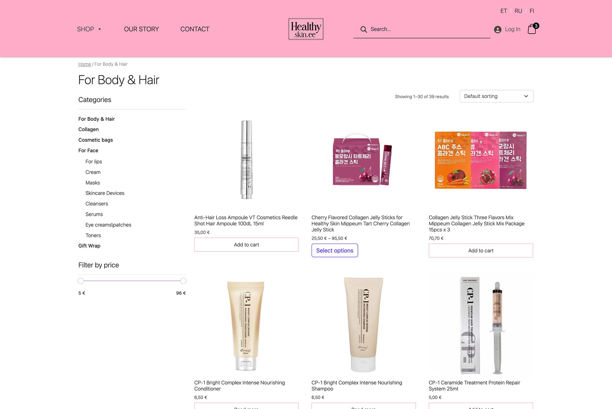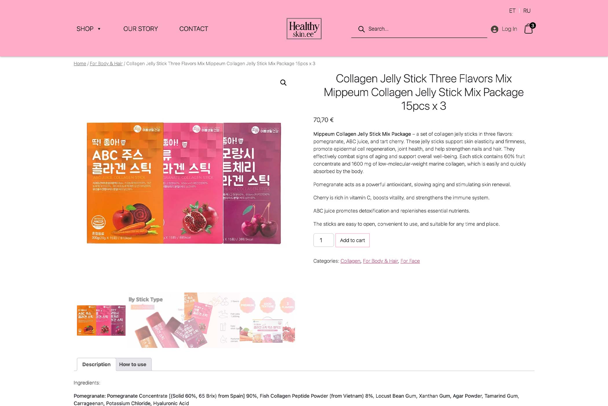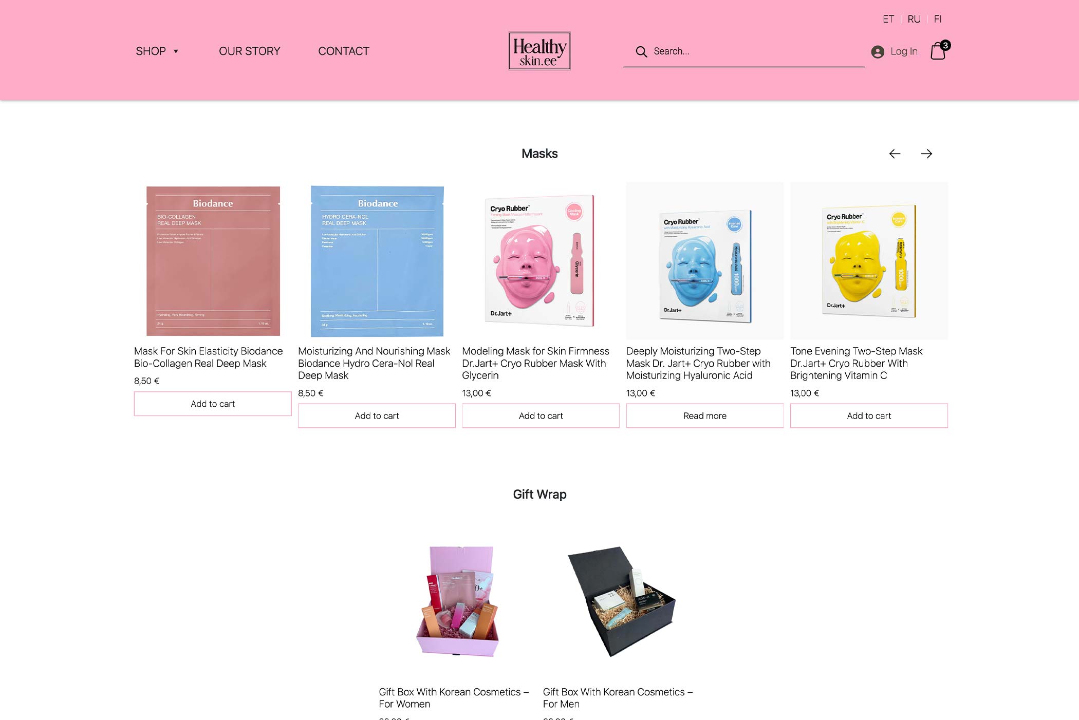 Healthyskin.ee is an online space inspired by the philosophy of Korean skincare. The project combines minimalist design, intuitive product navigation, and a mindful self-care atmosphere, reflecting a European approach to K-beauty.