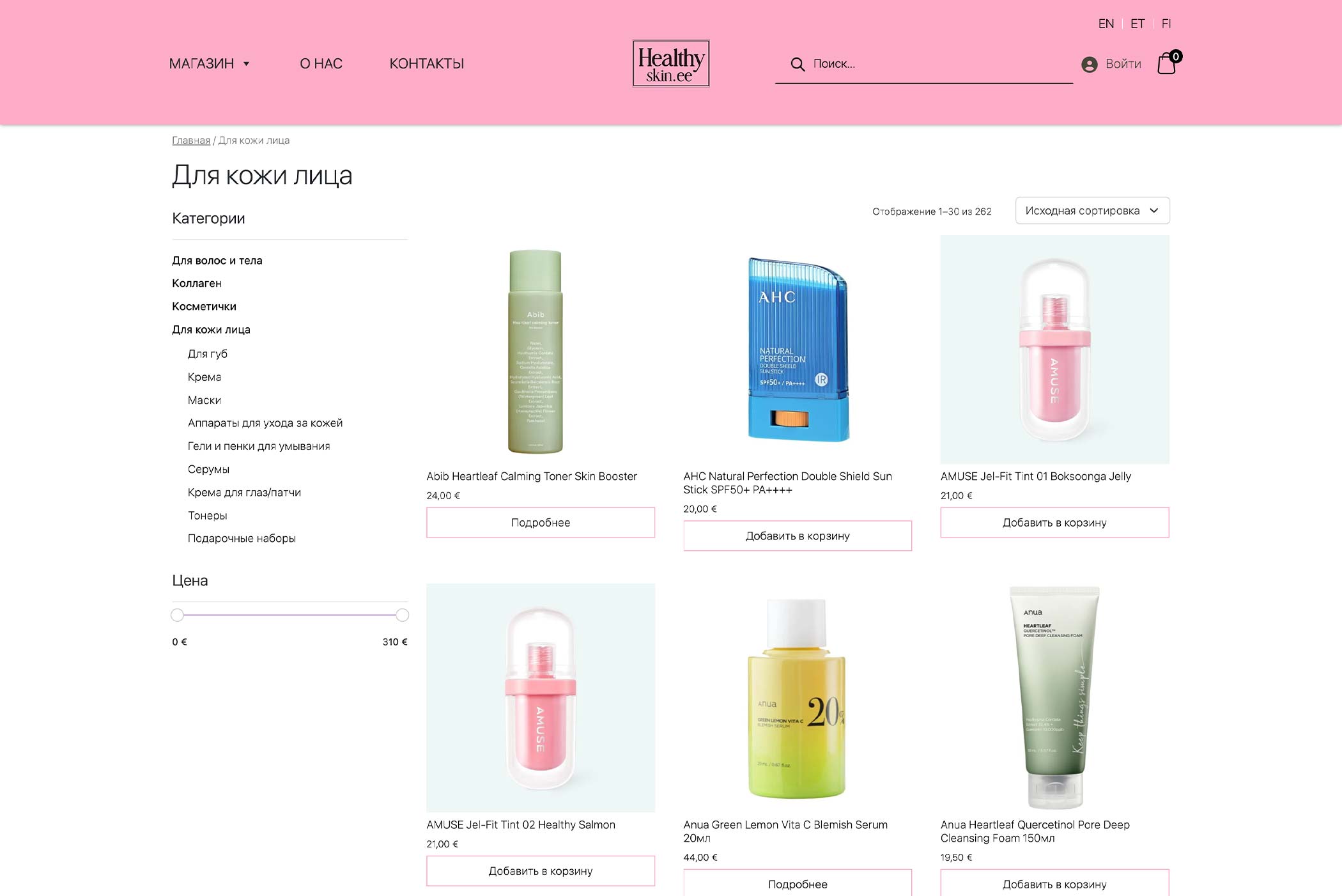 Healthyskin — онлайн-пространство, вдохновлённое философией корейского ухода за кожей. Проект сочетает лаконичный дизайн, удобную структуру каталога и атмосферу осознанного ухода за собой, отражая европейский взгляд на K-beauty.